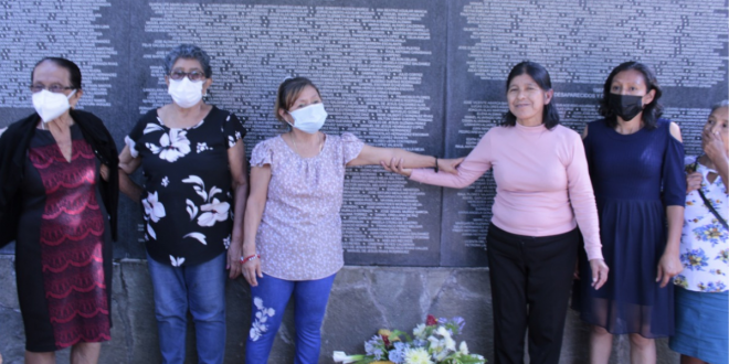 Al pie del monumento a las víctimas de la guerra, Carlota Ramírez depositó –como lo hace cada año- una ofrenda floral en recuerdo de nueve miembros de su familia, víctimas de captura, desaparición forzada y asesinato a manos de efectivos del ejército.