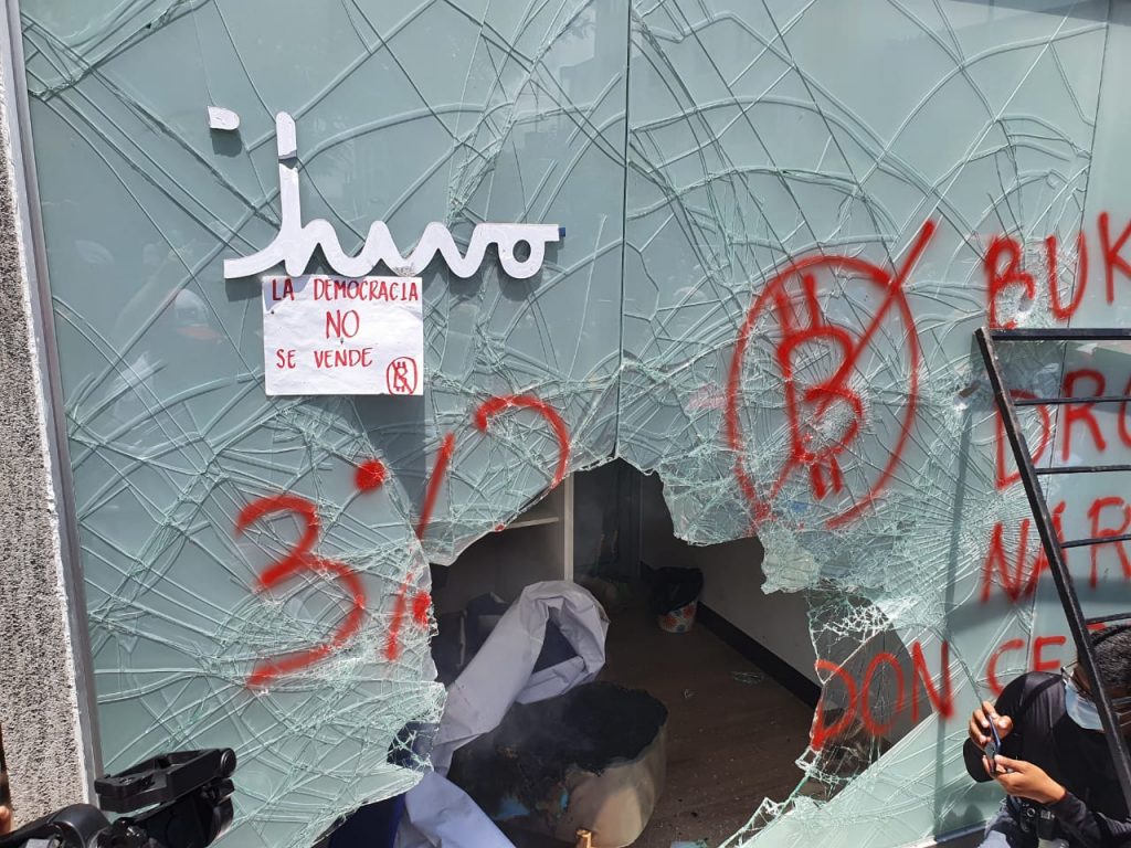 Al finalizar la concentración, un grupo de personas comenzaron a manchar e incendiar una caseta de Chivo, tal y como se puede ver en la siguiente imagen.