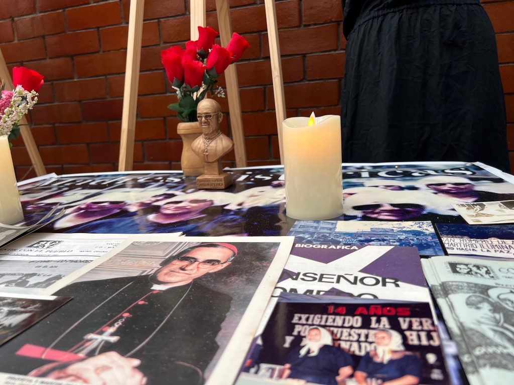 Entre los textos, destacan las estampas de monseñor Óscar Arnulfo Romero, su guía y símbolo que irradia su mensaje de justicia y amor por los más vulnerables. Es un altar que no solo cuenta la historia de CO-MADRES, sino que es un acto de memoria viva, de resistencia y de fe en que algún día se hará justicia para aquellos que un día ya no regresaron.