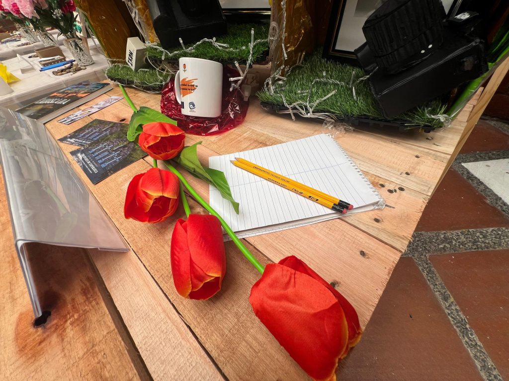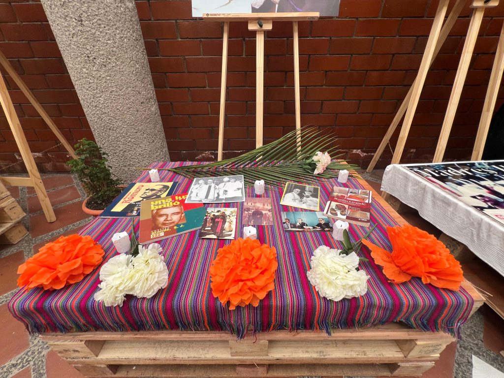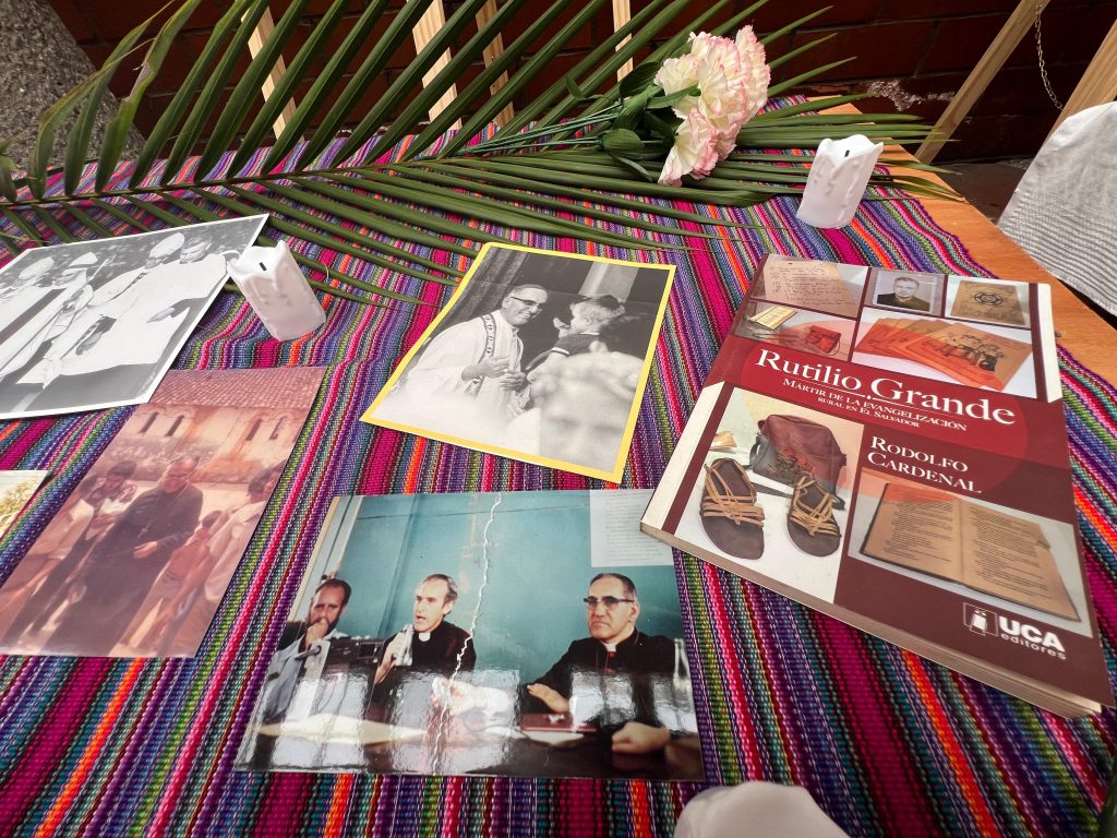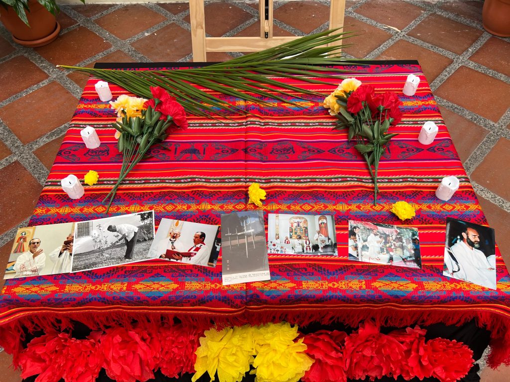 El altar en homenaje a monseñor Óscar Arnulfo Romero es un recordatorio a aquellos que dieron su vida por la justicia de El Salvador. Sobre una mesa adornada con flores de papel, velas y la palma que simboliza el martirio, descansan fotografías y fragmentos de literatura sobre Romero y otros mártires como el padre Rutilio Grande. Sus rostros y palabras hablan a quienes se acercan, recordándoles el compromiso con los más pobres, con los olvidados y con la dignidad humana que defendieron hasta el último instante. Es un altar de esperanza y gratitud, un espacio donde el sacrificio de Romero, Rutilio y tantos otros se transforma en una semilla de esperanza para todos.