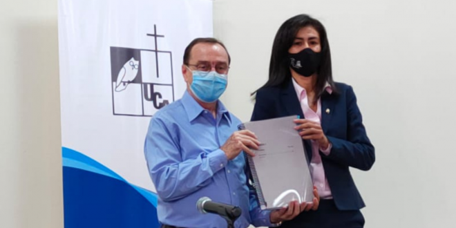 La coordinadora de la Comisión Nacional de Búsqueda de Personas Adultas Desaparecidas en el contexto del Conflicto Armado (CONABÚSQUEDA), Elsy Flores, recibió por parte del rector de la Universidad Centroamericana “José Simeón Cañas” (UCA), Andreu Oliva, registros de más de 900 denuncias sobre desapariciones forzadas en años del conflicto armado.