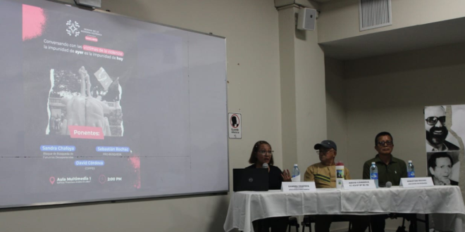 Sebastián Rochac participó junto a David Córdova, del Comité de Ex Presos y Presas Políticos (COPPES), y Sandra Chafoya, del Bloque de Búsqueda de Personas Desaparecidas, en el conversatorio “Víctimas de la violencia: la impunidad de ayer es la impunidad de hoy”, en el marco de la tercera edición de la Semana de la Memoria Histórica.