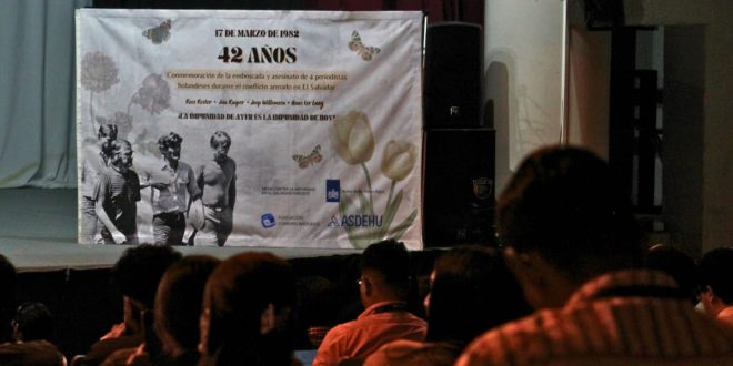 Más de 200 estudiantes de periodismo de la Universidad de El Salvador (UES) se dieron cita en un foro denominado “Crímenes contra periodistas y libertad de expresión: conmemoración de los 42 años caso 4 periodistas holandeses”, en el que conocieron de primera mano sobre este caso y la impunidad que ha imperado sobre el mismo.