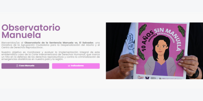 Organizaciones feministas y de derechos humanos presentaron el Observatorio Manuela, una herramienta digital con la que pretenden fiscalizar el cumplimiento de la sentencia en la que la Corte Interamericana de Derechos Humanos (Corte IDH) declaró responsable internacionalmente a El Salvador por el caso de Manuela, quien fue criminalizada tras sufrir una emergencia obstétrica y murió mientras estaba privada de libertad.