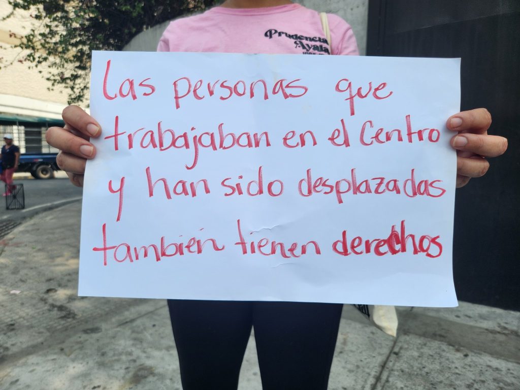 En la marcha también se mostró el apoyo a los comerciantes informales que fueron desalojados del Centro Histórico de San Salvador. En los carteles de apoyo se leía: “Las personas que trabajan en el centro y han sido desplazadas también tienen derechos”.