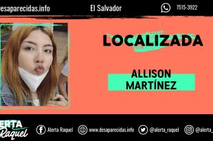 La joven salvadoreña Allisson Martínez, reportada por la cuenta Alerta Raquel como desaparecida, ha sido “localizada con vida y se encuentra estable”, informó este movimiento en redes sociales, el cual se activa ante estos casos para ayudar a la pronta localización. “Gracias a todas las personas que difundieron su alerta”, …