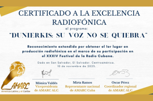 La Asociación Mundial de Radios Comunitarias en América Latina y el Caribe (AMARC ALC) otorgó cinco certificados a la excelencia radiofónica a los programas que fueron producidos por comunicadores y periodistas cubanos en el marco del XXXIV Festival de la Radio Cubana. Los dos primeros lugares se otorgaron a los …