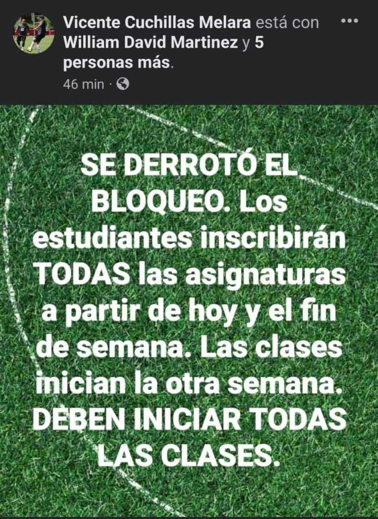 “Los estudiantes inscribirán TODAS las asignaturas a partir de hoy y el fin de semana. Las clases inician la otra semana”, aseguró.